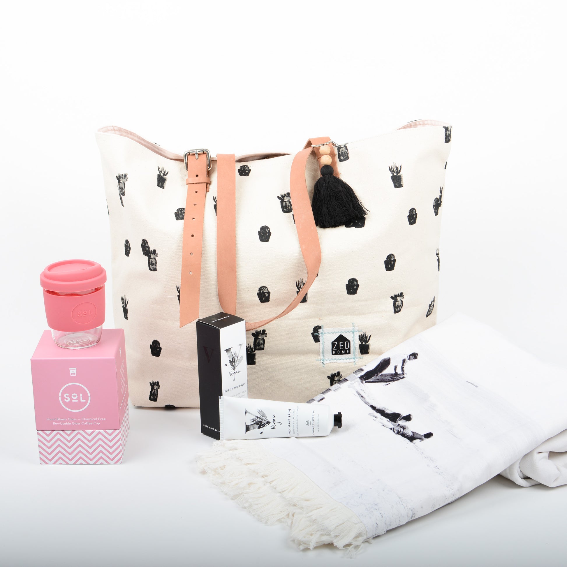 - A Large canvas fabric ZED bag with leather straps and key ring. You will fit all you need into this stylish bag for a day out!